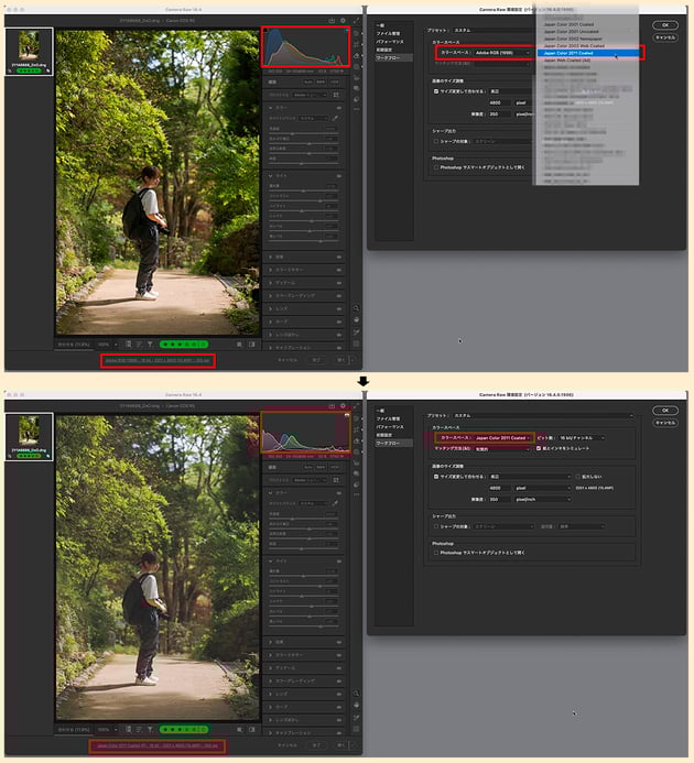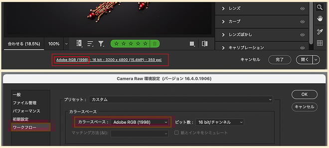 ♦️CameraRawの環境設定「ワークフロー(オプション)」の色空間♦️