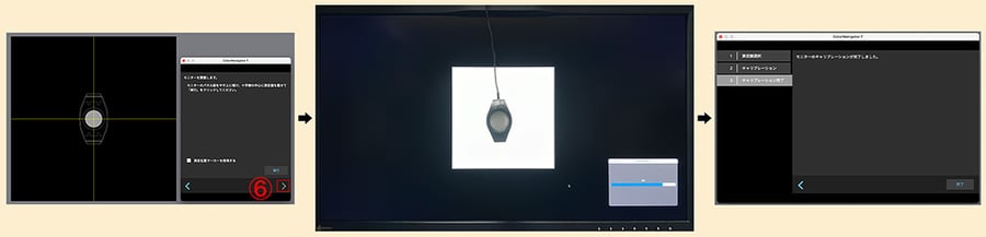 測定器が設置出来たら、⑥「>(次へ)」でキャリブレーションを進めます。計測が終われば完了です。